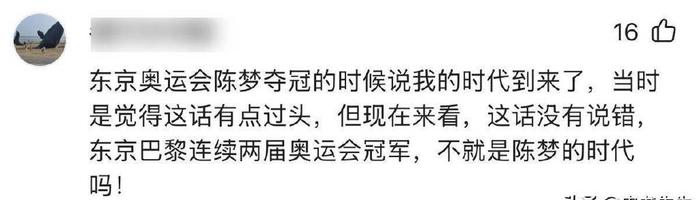 比赛刚刚结束,陈梦面对采访的记者,激动得一时不知道该说啥,想要表达自己此刻喜极而泣的心情,竟然脱口而出:“我的时代终于来了,终于等到这一天!”